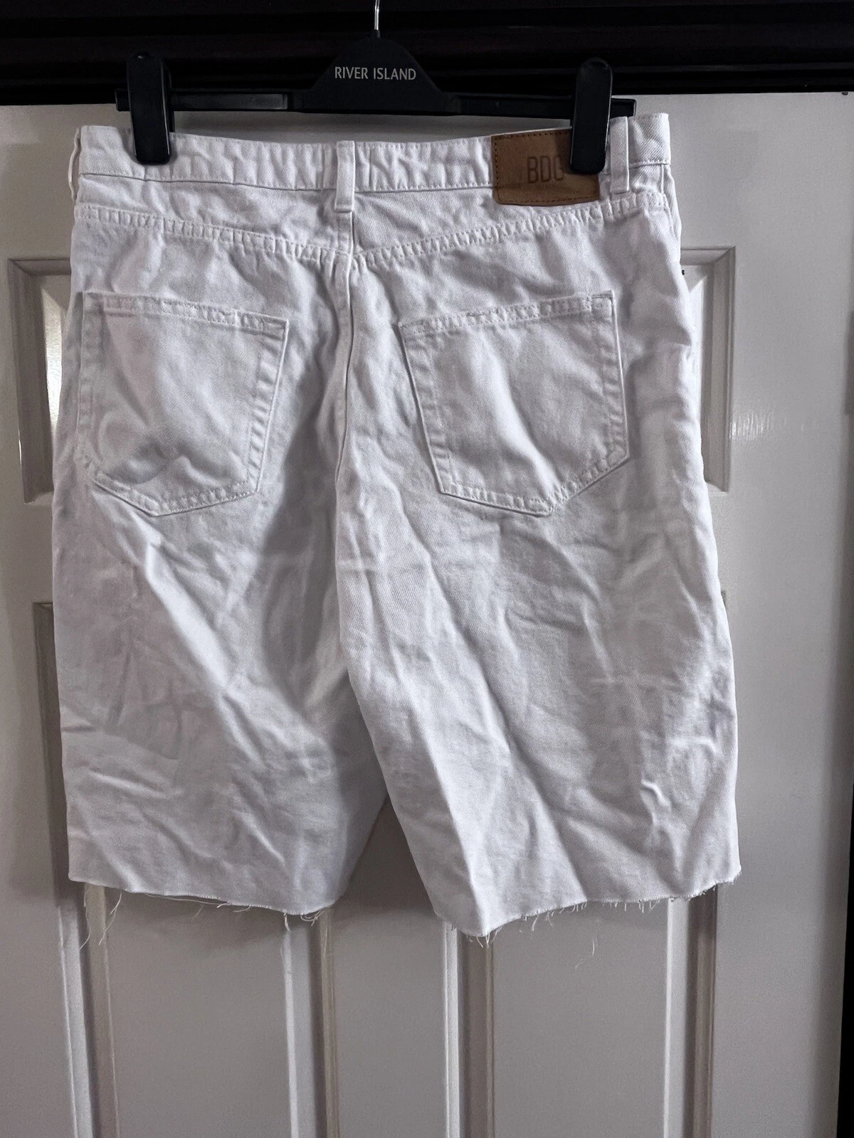Bdg White Denim Shorts Frayed Hem Knee Length. Ladies quantity