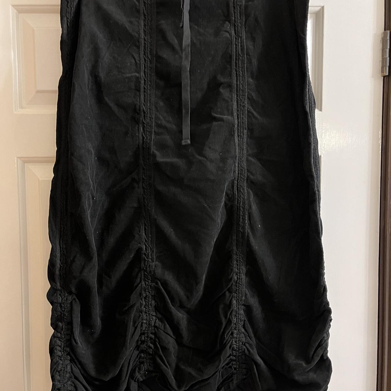 Cut loose Black midi skirt with elasticated waist and ruched detail,