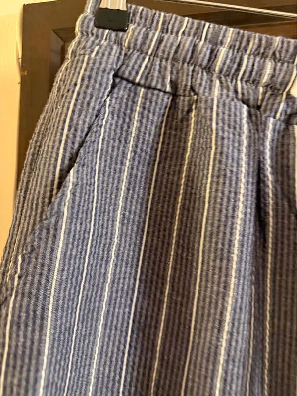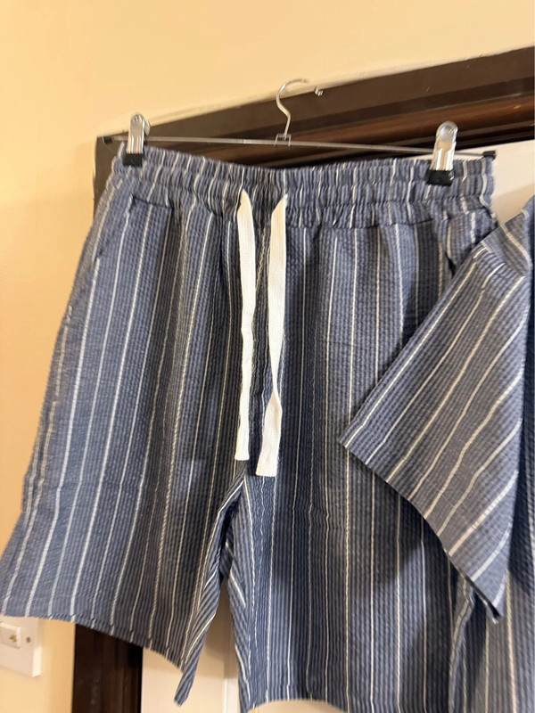 Side pockets on shorts .elastic waist . Shoulder 21, length 28” Waist 30”