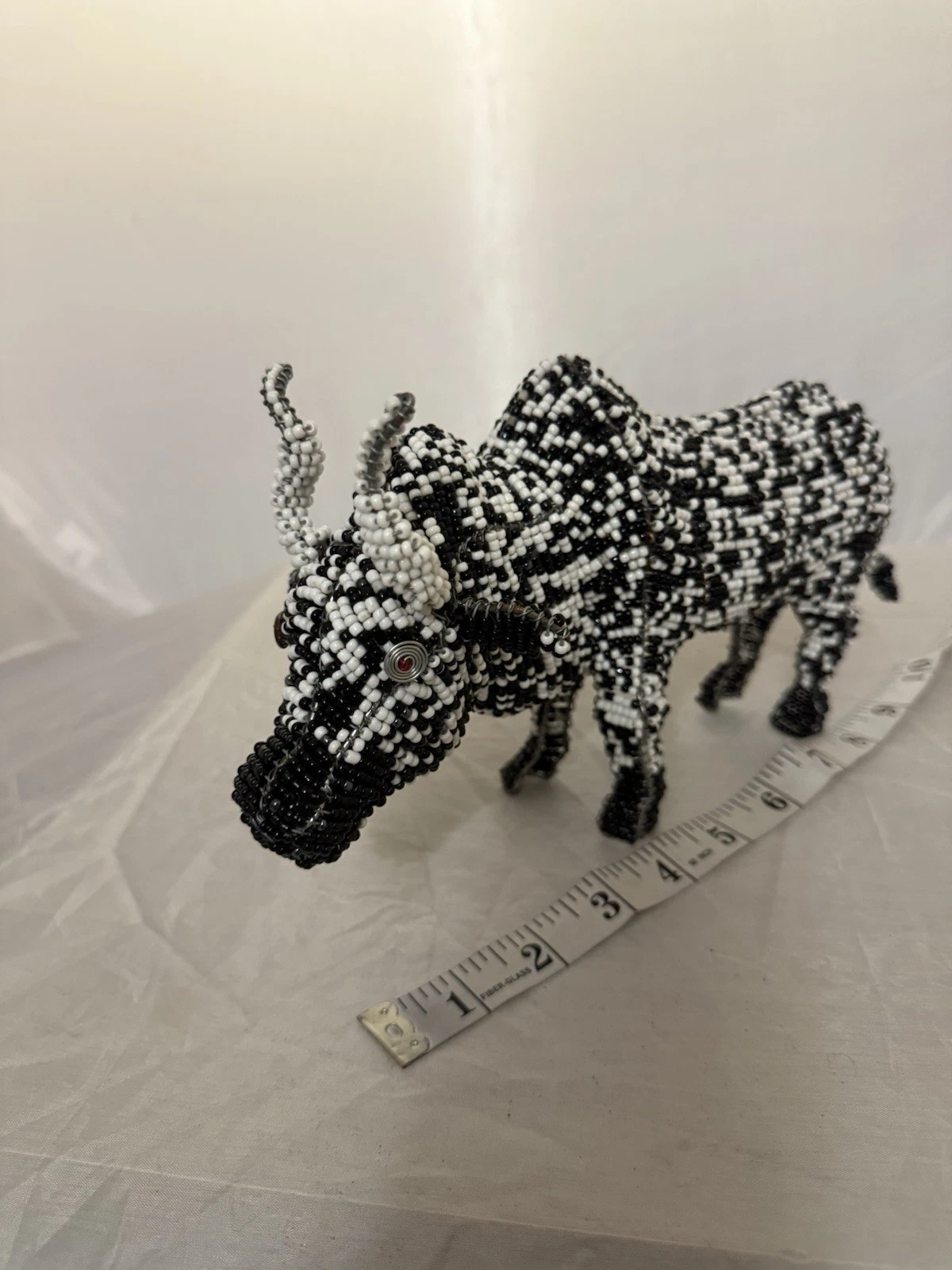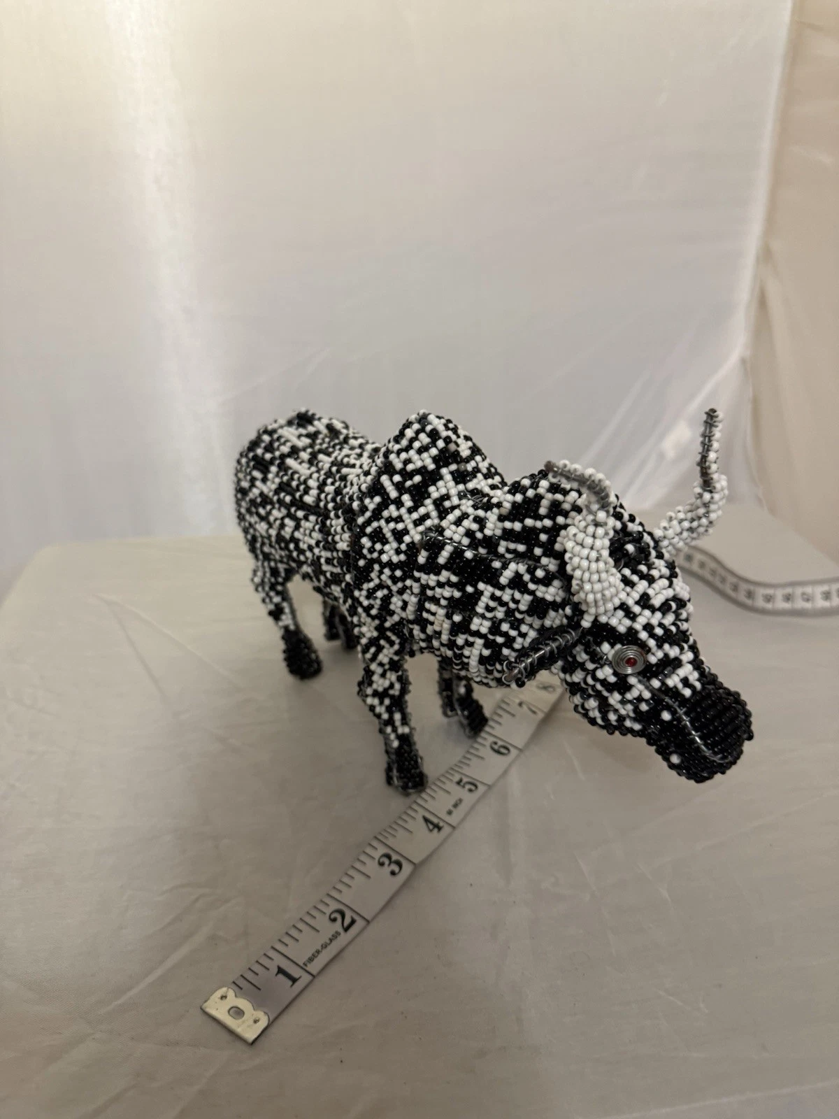 Handmade Black And White Bead And Wire Bull Figure quantity
