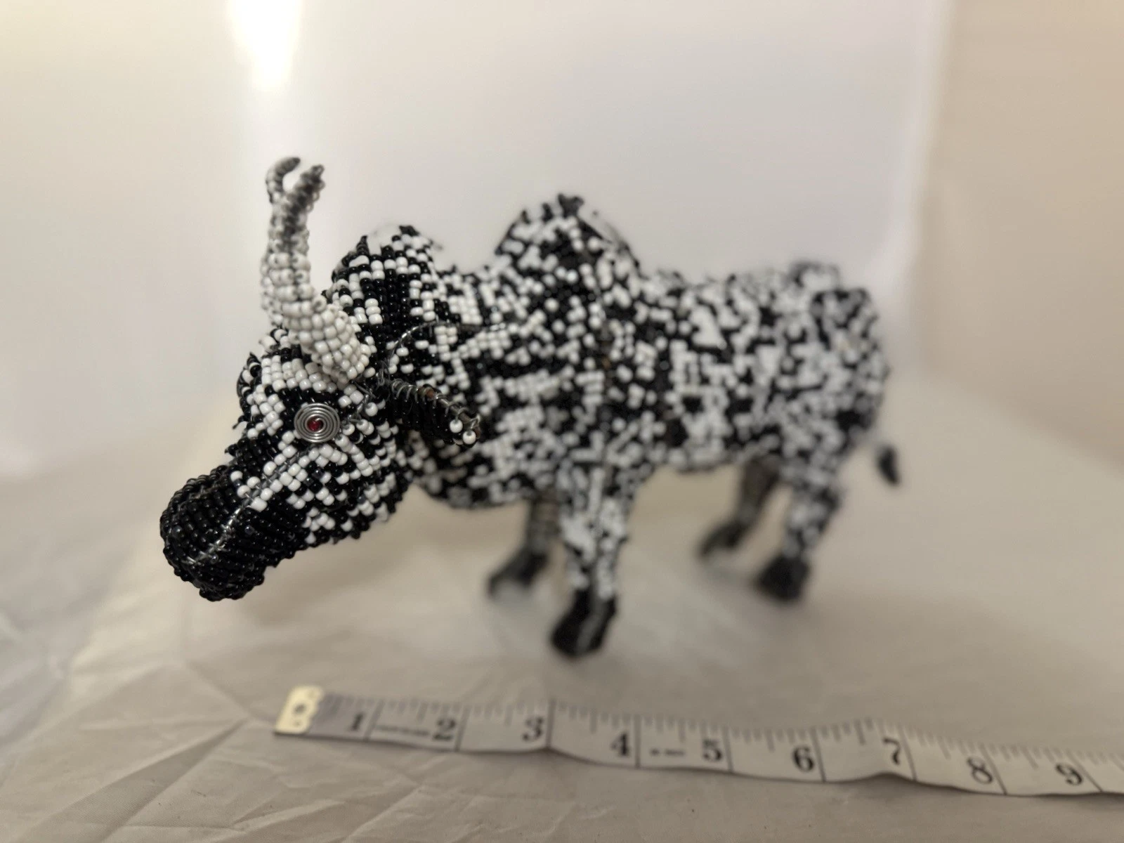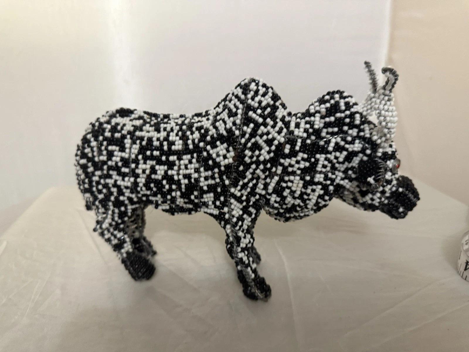 / Handmade Black And White Bead And Wire Bull Figure