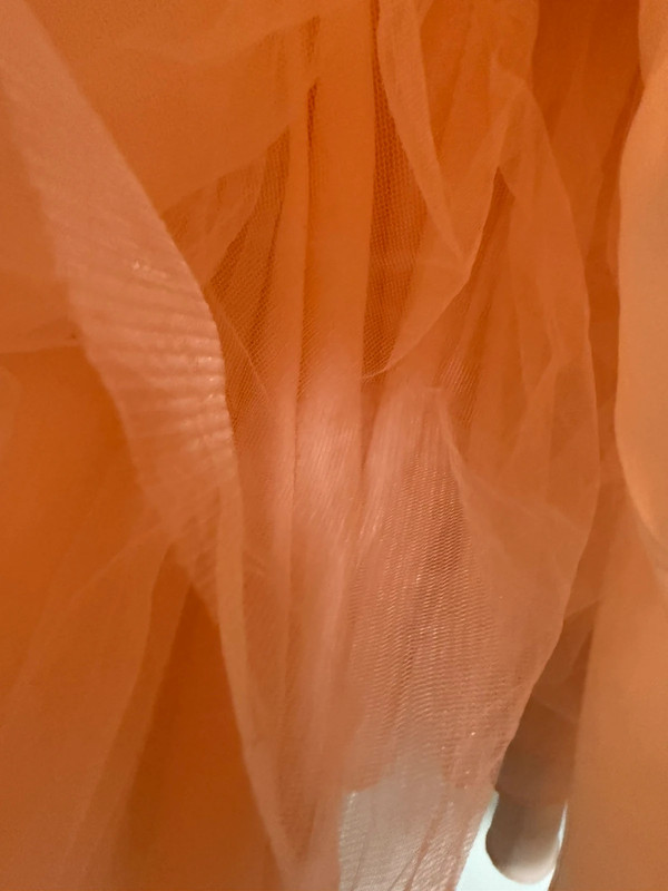 Mesh and polyester lining. Very good Condition . Back bow detail. Mesh lined for a Full flare detail