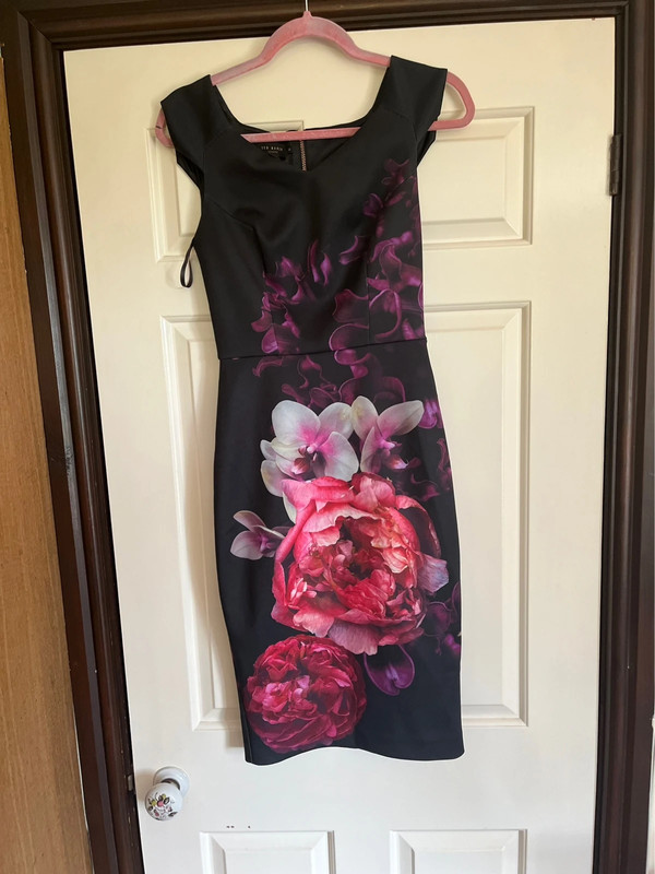 This fabulous Ted Baker dress in black with multicolor flowers, peonies and orchids and feminine bodycon fit, will give a romantic chic vibe to your next party. Featuring also back zipper in rose gold tone, cap sleeves and knee length this stylish number will keep at the top of the style stakes.