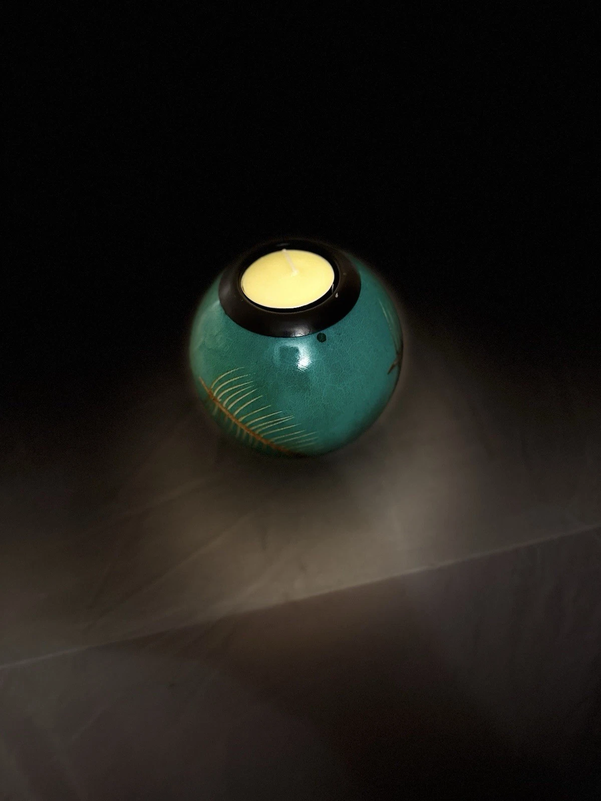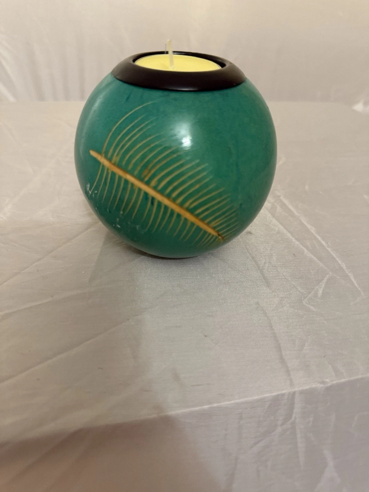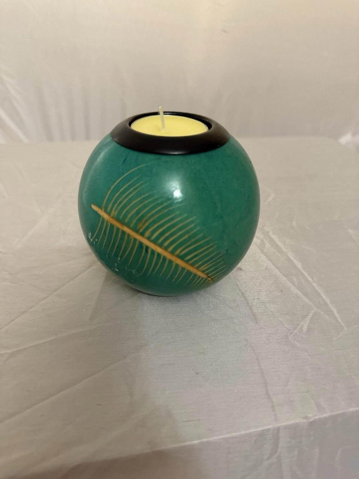 / Turquoise Monkey Apple Carved Tea light Holder